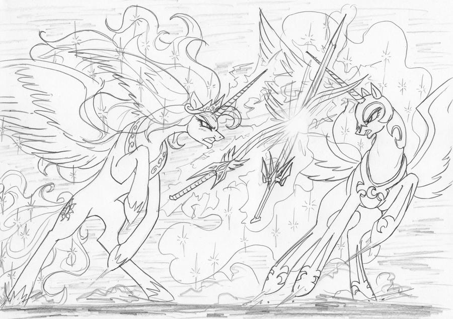 The full Fight between Celestia Daybreaker and Nightmare Moon from mlp A royal Problem. My Little Pony coloring pages printable games. You can print or download them to color and offer them to your family and friends.