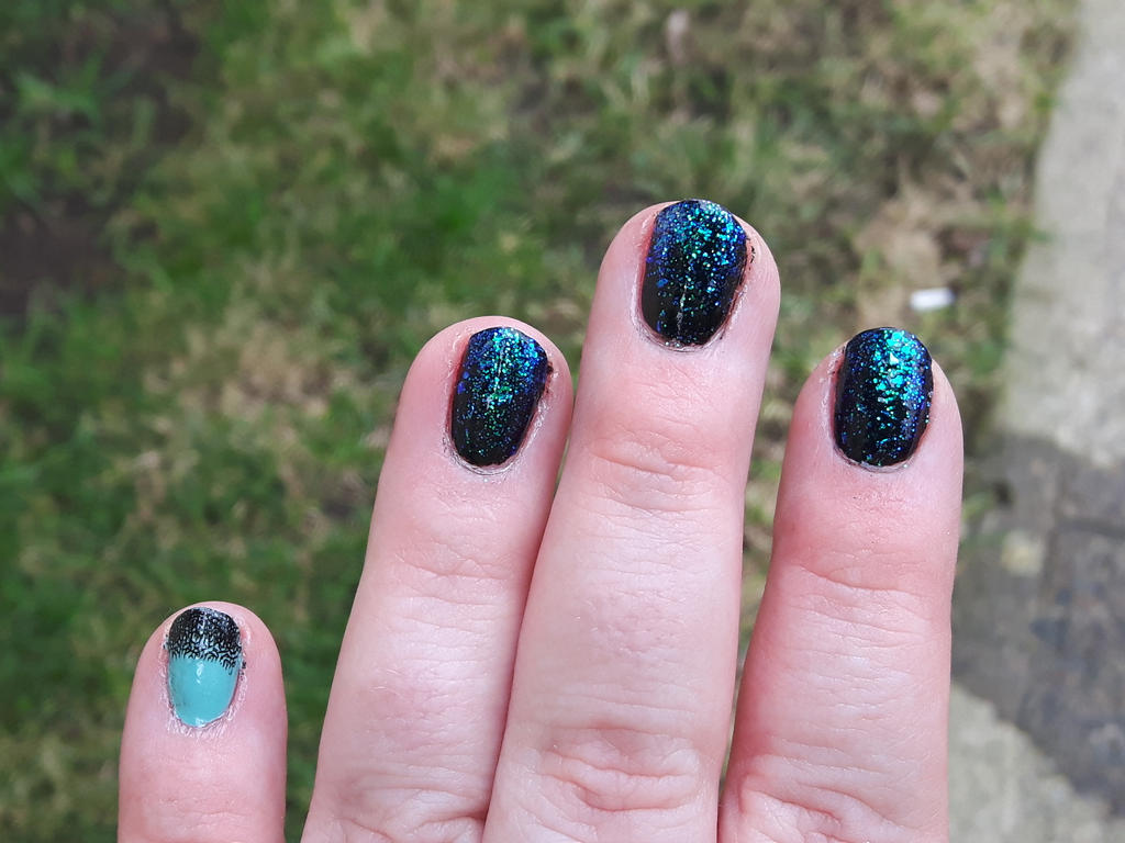 Teal Glitter Gradient On Black Nail Art By Dragonstreasureart On Deviantart