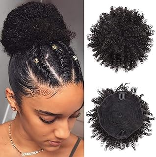 Amazon Com Wrap Drawstring Short Afro Kinky Curly Human Hair Puff Ponytail Extensions With Clips 4b 4c Natural Curly Top Closure Clip Ins Ponytail Extensions For African American Women 12 Inch Beauty