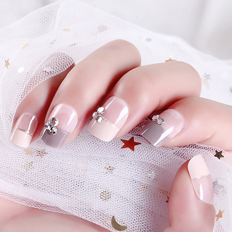 24pcs Light Gray Rhinestones Fake Nails Short False Nail Art Shopee Philippines