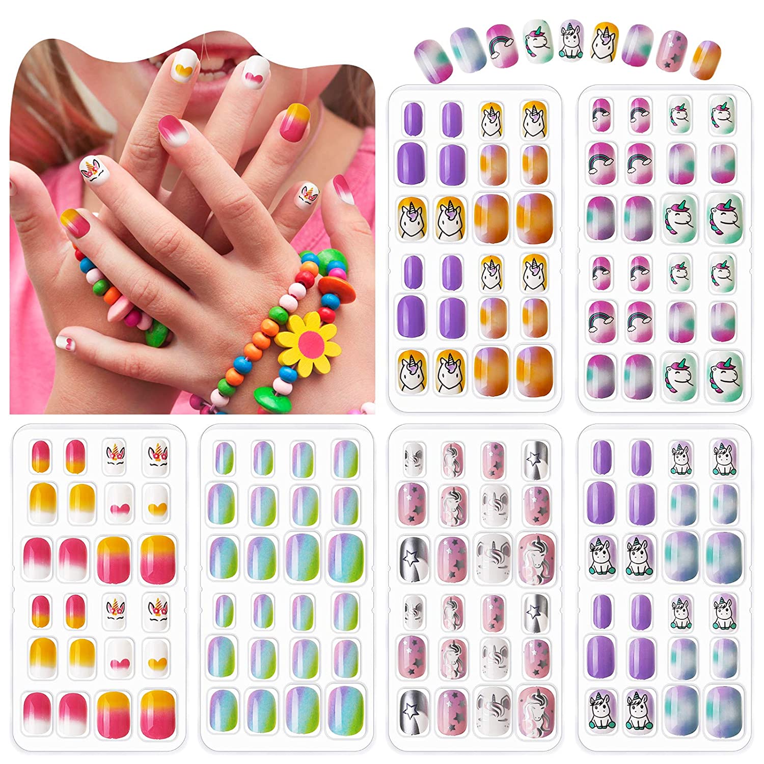 Buy 144 Pieces 6 Boxes Kids Fake Nails Unicorn Themed Girls Press On Nails Children Gradient Color Rainbow False Nails Glitter Full Cover Short False Nails For Girls Kids Online In Nigeria B08lyb2xtg