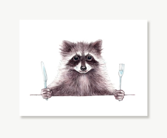 Raccoon Print Funny Animal Art Kitchen Art Watercolor Etsy