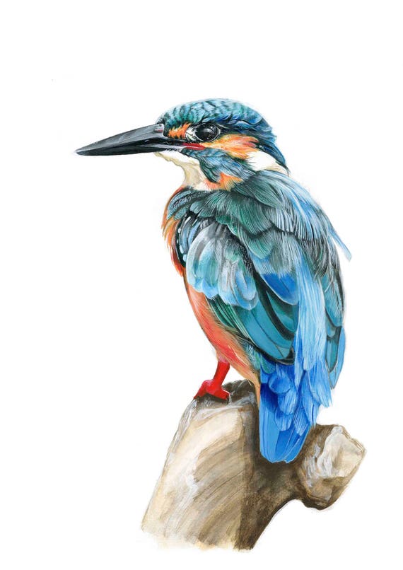 Kingfisher Art Print Illustration Bird Animal Art Bird Etsy
