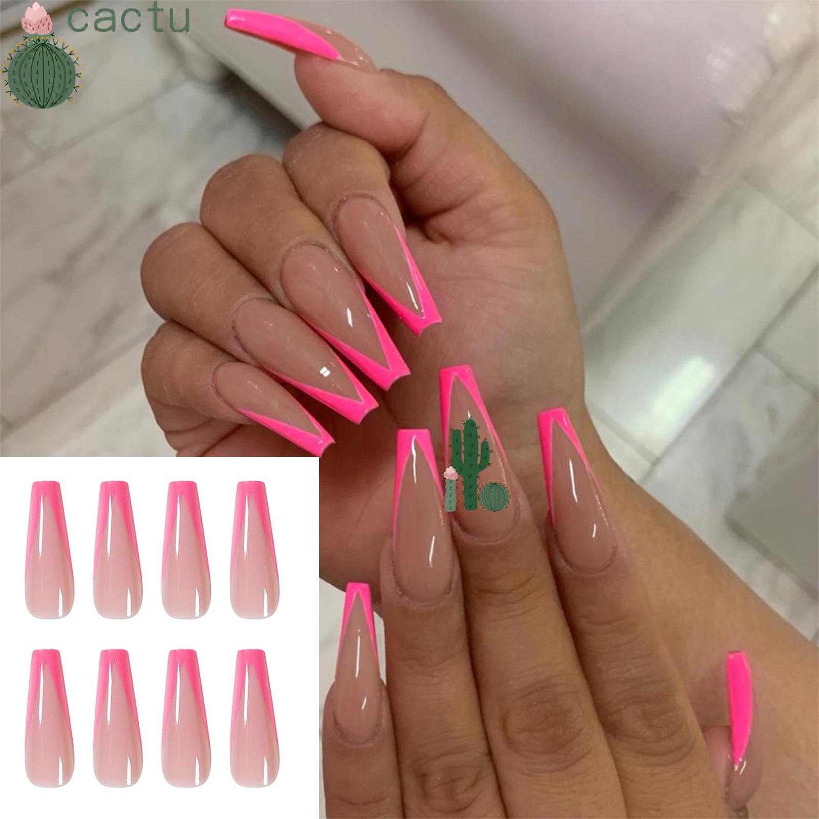 Cactu 24pcs Box Pink French Ballerina False Nails Long Coffin Fake Nails Wearable Detachable Artificial Manicure Tool Full Cover Nail Tips Shopee Singapore
